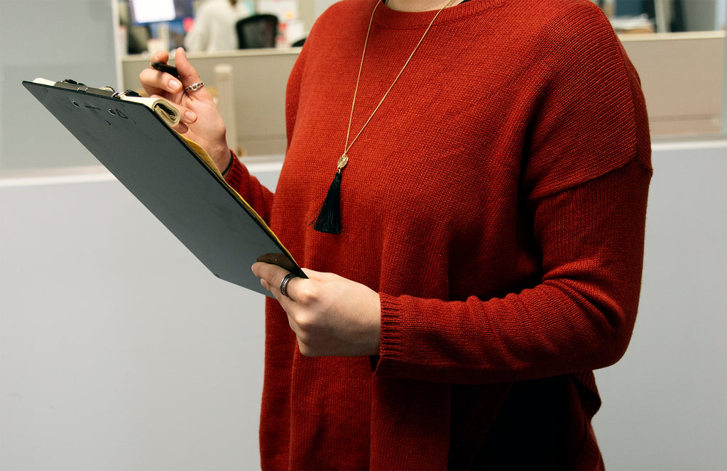 - Low profile clip holds up to 1/2" of paper, includes built in hanging hole